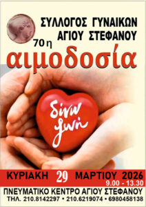 ΑΙΜΟΔΟΣΙΑ – ΚΥΡΙΑΚΗ 29 ΜΑΡΤΙΟΥ 2026