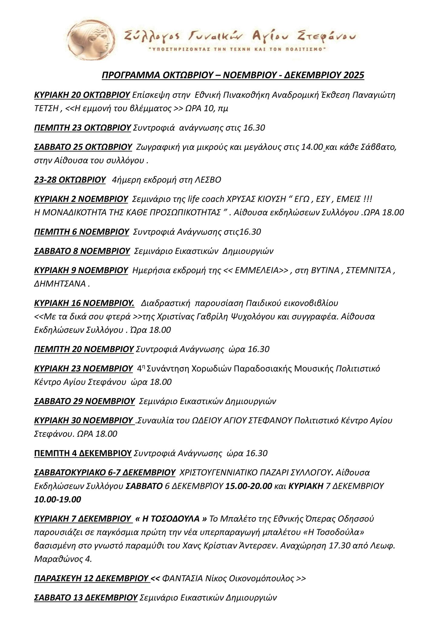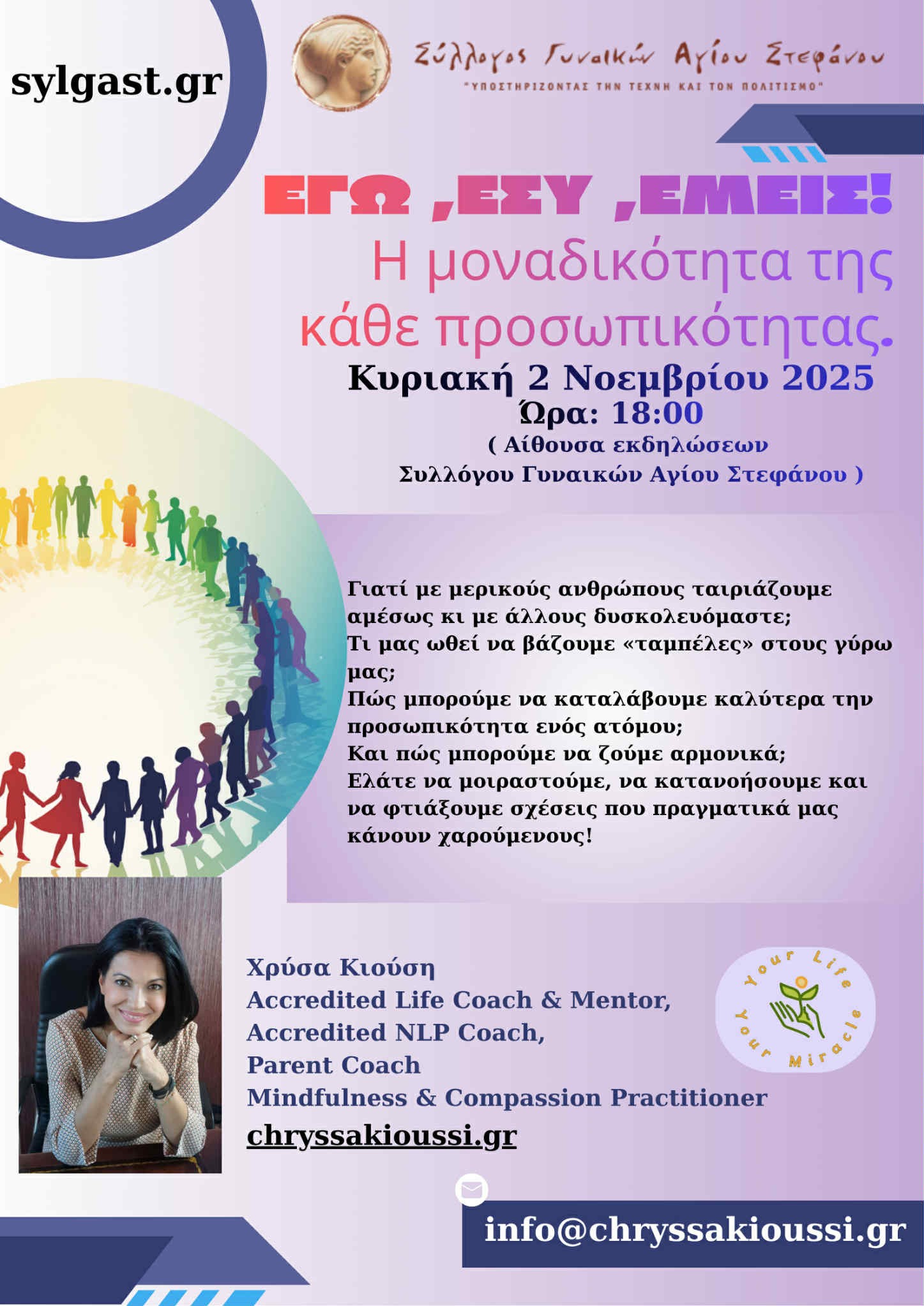 21 Οκτ ΚΥΡΙΑΚΗ 2 ΝΟΕΜΒΡΙΟΥ 2025 ” ΕΓΩ, ΕΣΥ, ΕΜΕΙΣ ” ΜΕ ΤΗΝ ΧΡΥΣΑ ΚΙΟΥΣΗ Posted at 20:00h in Νέα Read More