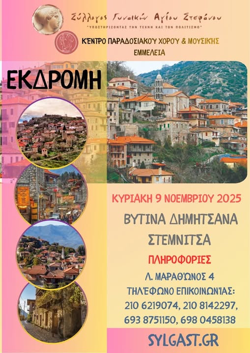 06 Νοέ ΚΥΡΙΑΚΗ 9 ΝΟΕΜΒΡΙΟΥ 2025 ΜΟΝΟΗΜΕΡΗ ΕΚΔΡΟΜΗ ΒΥΤΙΝΑ – ΔΗΜΗΤΣΑΝΑ – ΣΤΕΜΝΙΤΣΑ Posted at 19:26h in Νέα Read More